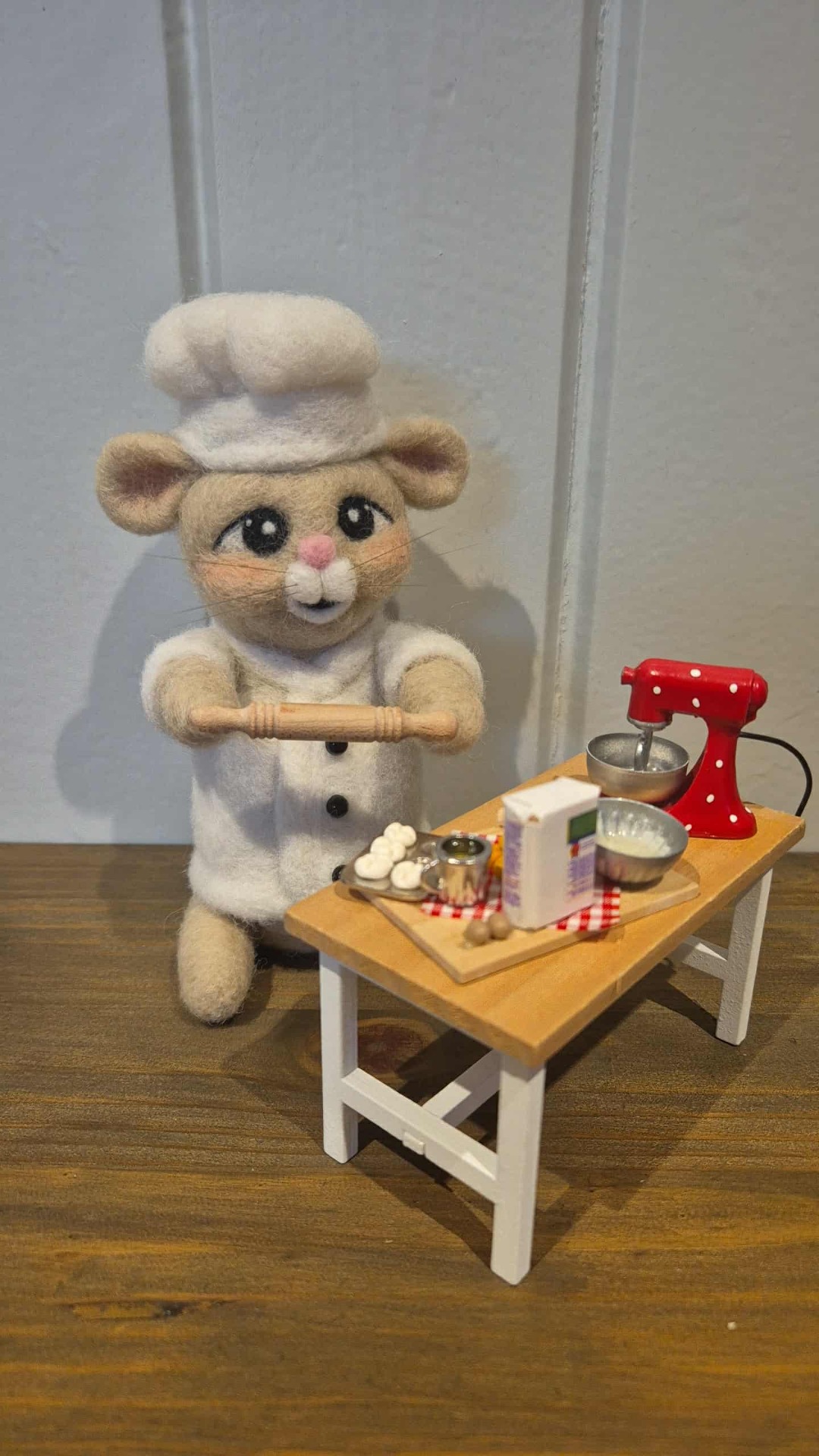 Bakeren Herman er 14 cm høy.Bord og detaljer er i pakken sammen med figuren.